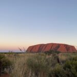 朝日に照らされるエアーズロックを